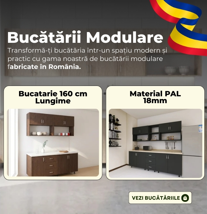 Am ales o bucătărie modulară de la ALEXAMOB și experiența a fost excelentă. Mobilierul este bine construit, modern și foarte bine finisat. Se vede atenția la detalii și seriozitatea unei fabrici care pune accent pe calitate. Transportul a fost rapid și profesionist. Cu siguranță voi reveni pentru alte piese de mobilier.
