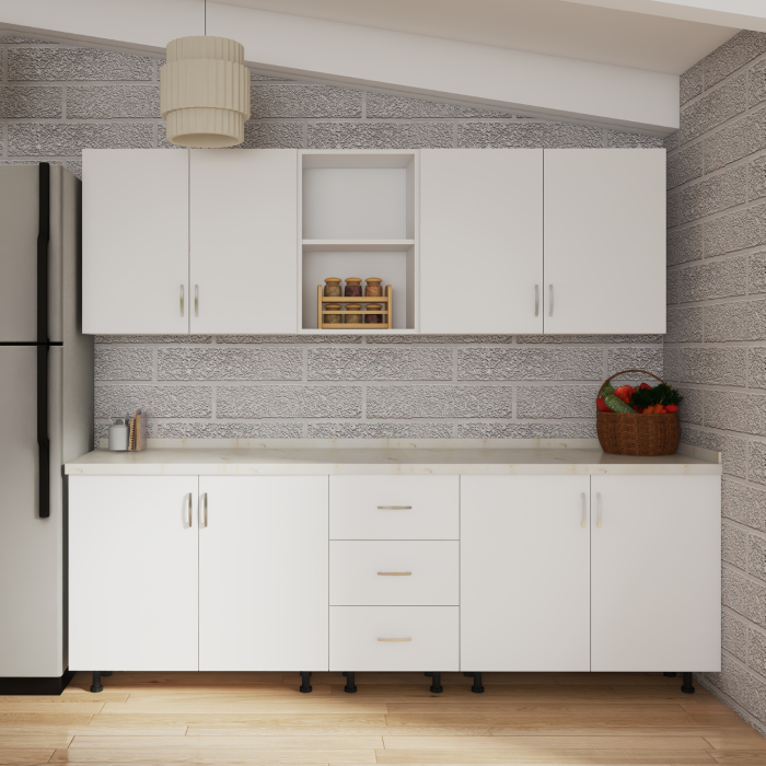• Raft în Interior: Fiecare corp modular include un raft în interior, oferind suficient spațiu de depozitare pentru toate ustensilele și accesoriile tale de bucătărie.
