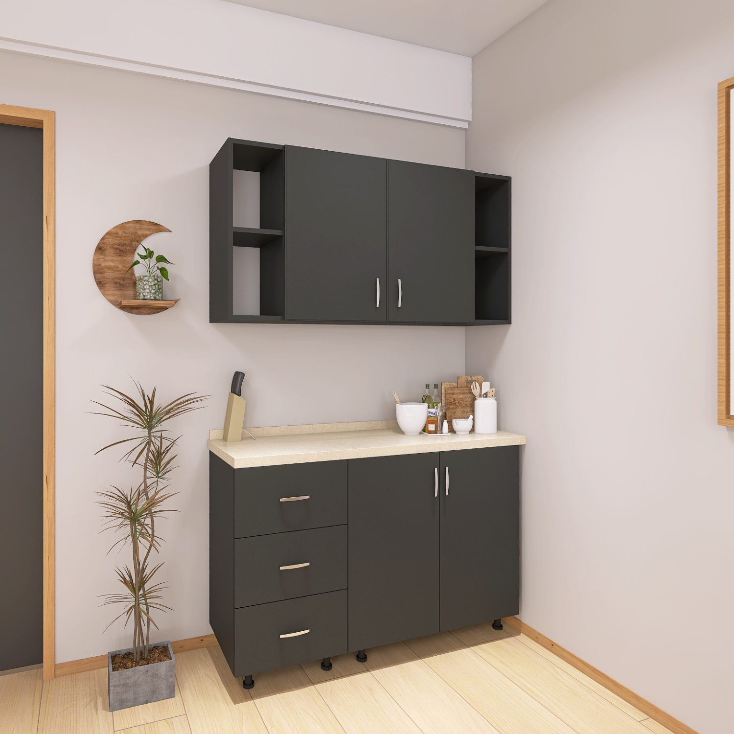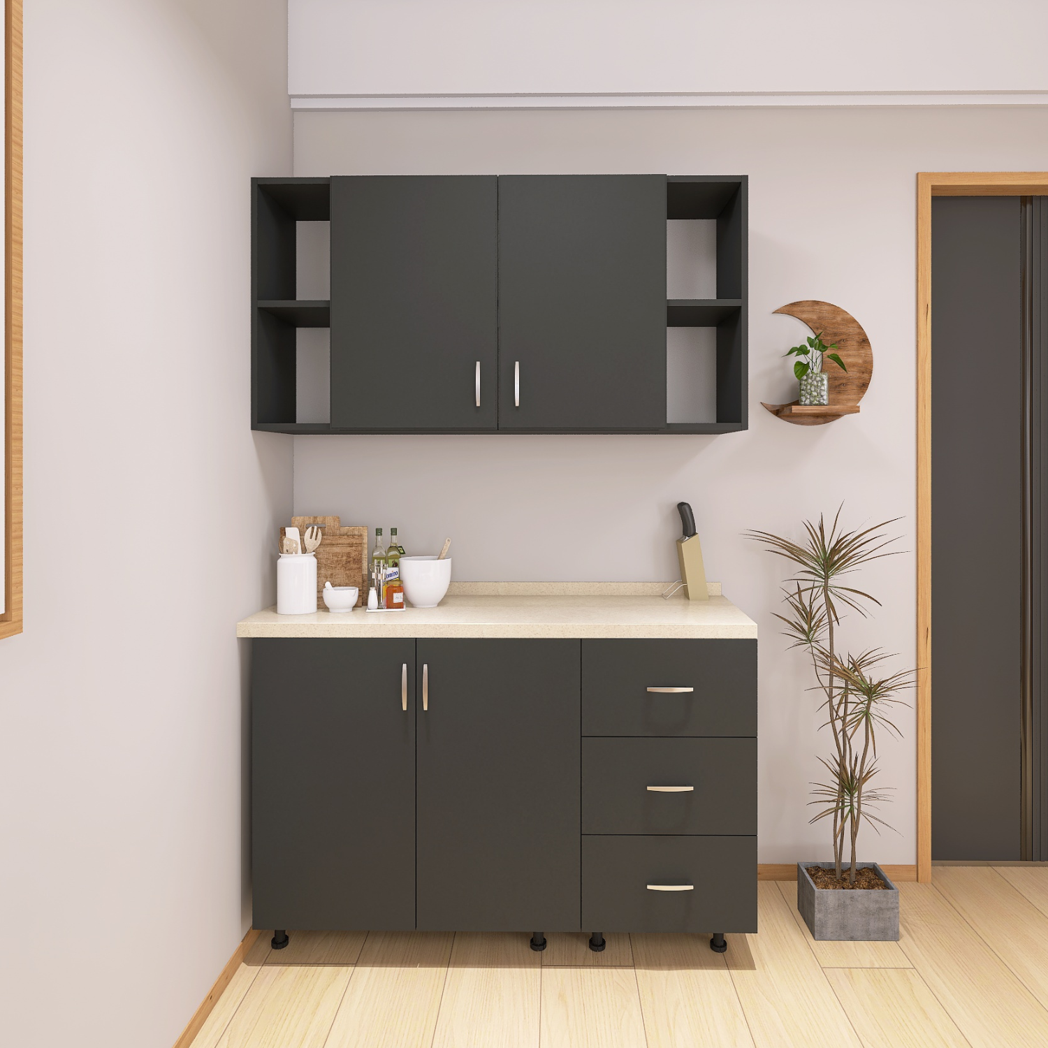 Bucatarie 120 cm Lungime, Material PAL 18mm, Culoare GRI ANTRACIT, Blat termorezistent 2,8cm