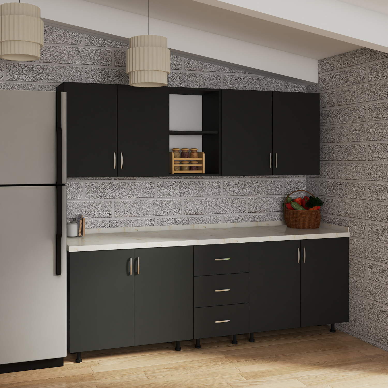 • Raft în Interior: Fiecare corp modular include un raft în interior, oferind suficient spațiu de depozitare pentru toate ustensilele și accesoriile tale de bucătărie.