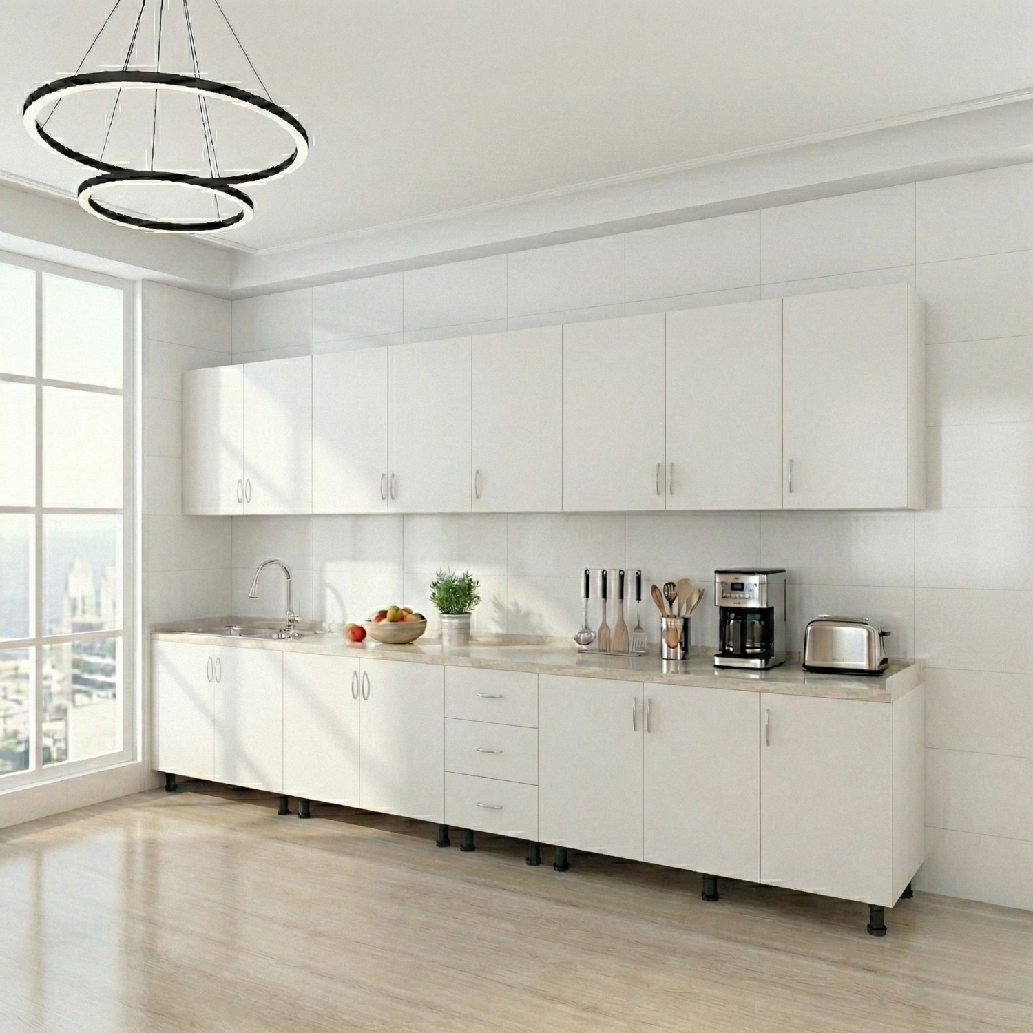 Această bucătărie modulară este proiectată pentru a oferi un echilibru ideal între funcționalitate, durabilitate și estetică modernă, fiind potrivită atât pentru locuințe noi, cât și pentru renovări. Construită din materiale rezistente și echipată cu feronerie de calitate, mobila asigură o utilizare confortabilă pe termen lung și o organizare eficientă a spațiului.