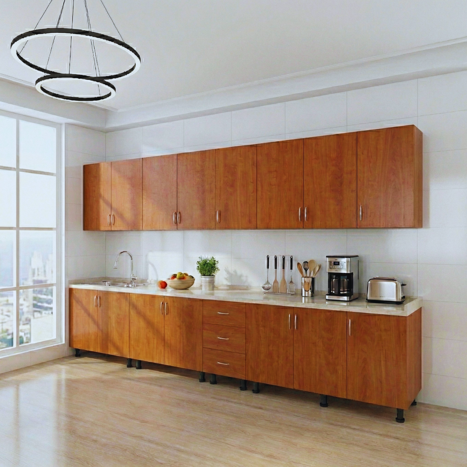 Această bucătărie modulară este proiectată pentru a oferi un echilibru ideal între funcționalitate, durabilitate și estetică modernă, fiind potrivită atât pentru locuințe noi, cât și pentru renovări. Construită din materiale rezistente și echipată cu feronerie de calitate, mobila asigură o utilizare confortabilă pe termen lung și o organizare eficientă a spațiului.