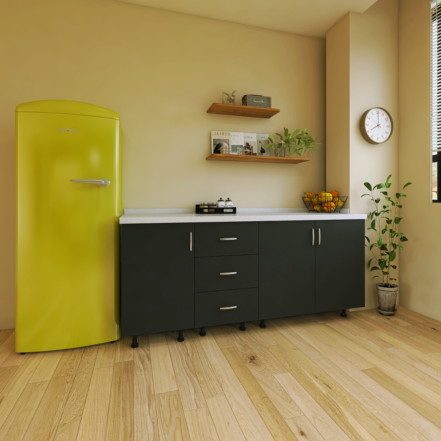 Știm că nicio podea nu este perfect dreaptă. De aceea, am dotat corpurile cu picioare reglabile, permițându-ți să aliniezi perfect blatul chiar și pe suprafețe cu denivelări.