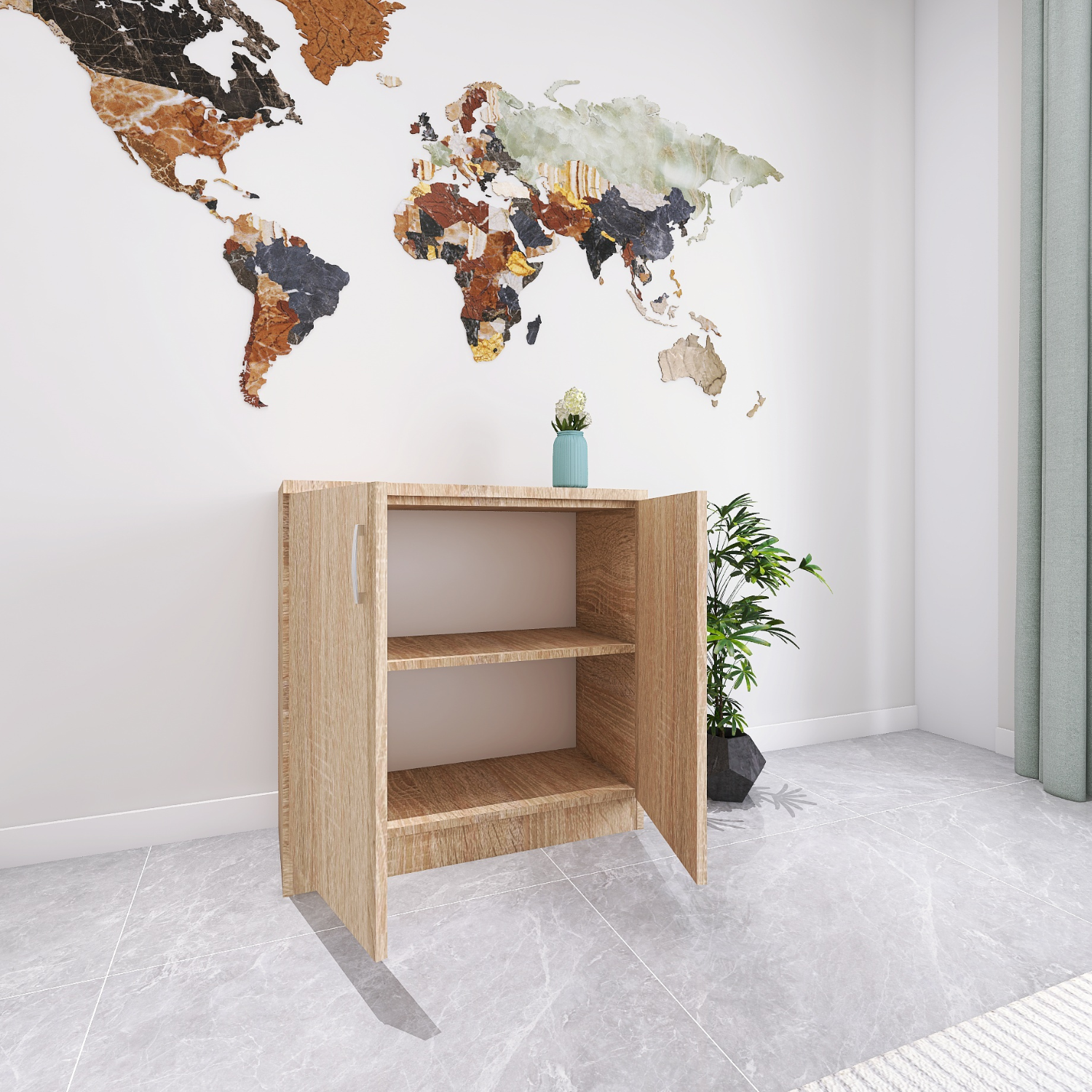 Comoda dispune de un blat solid, perfect pentru suportul TV-ului, iar compartimentarea inferioară oferă spațiu generos de depozitare – ideal pentru cabluri, telecomenzi, reviste sau alte obiecte uzuale. Aceasta include uși cu deschidere clasică pentru o organizare practică și estetică.