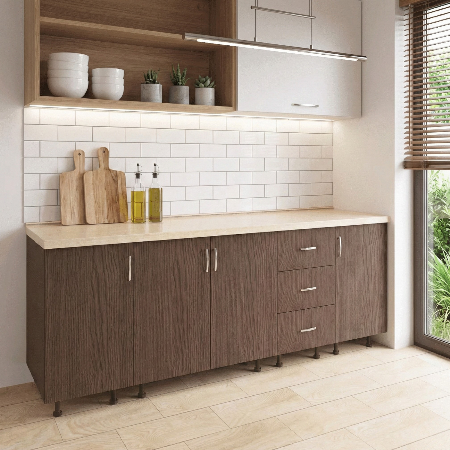 Spre deosebire de variantele economice de pe piață, mobilierul nostru este fabricat din PAL de 18 mm, asigurând o structură rigidă și rezistentă la greutate. Cantul ABS aplicat pe margini protejează eficient împotriva umidității și a loviturilor, prevenind umflarea materialului în timp.