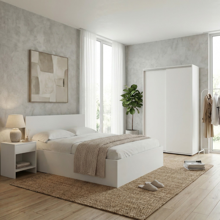 Set Dormitor Ari, Culoare Alb, Pal 18mm