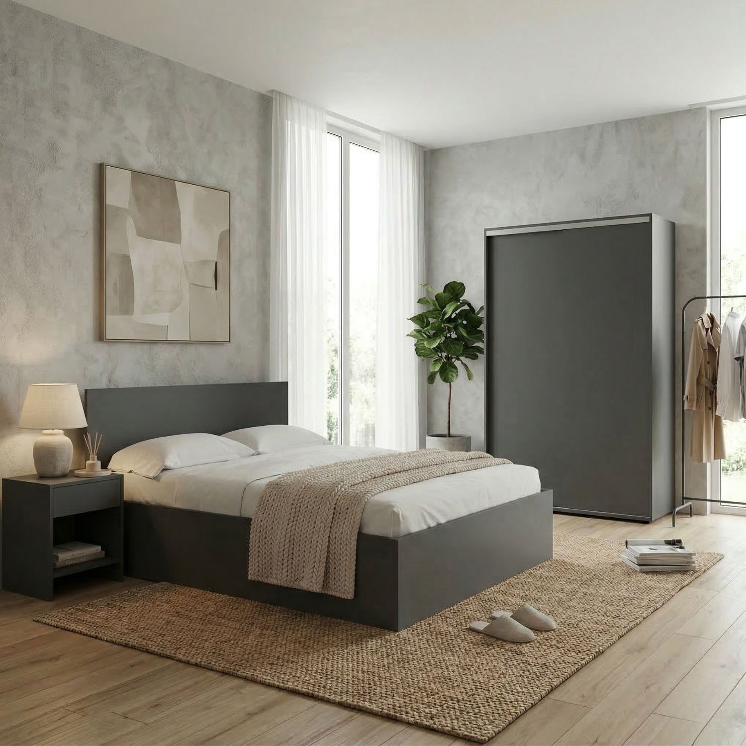 Set Dormitor Ari, Culoare Gri Antracit, Pal 18mm