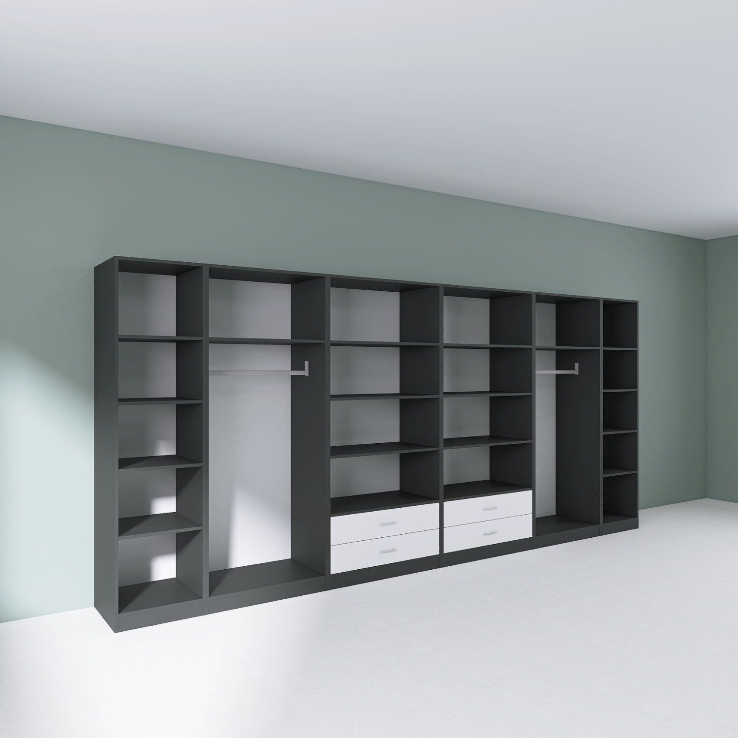 • 2x Carcasa cu 4 rafturi si 2 sertare L80 x A50 x H200 cm;