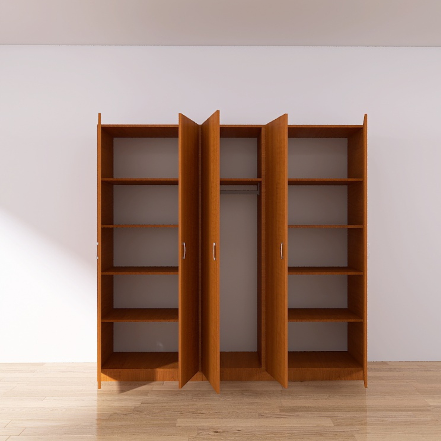 Dulap 5 usi cu rafturi si bara haine , H200 X L205 X A50cm, PAL 18mm, Culoare CIRES
