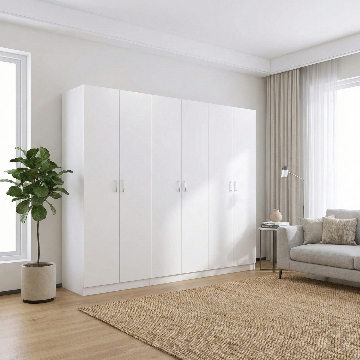 Acest dulap este o soluție modernă și practică, ideală pentru a completa diverse spații din locuința dumneavoastră. Conceput pentru a se integra ușor în orice tip de încăpere, fie dormitor, hol sau living, acest dulap aduce un plus de stil și funcționalitate în locuință.