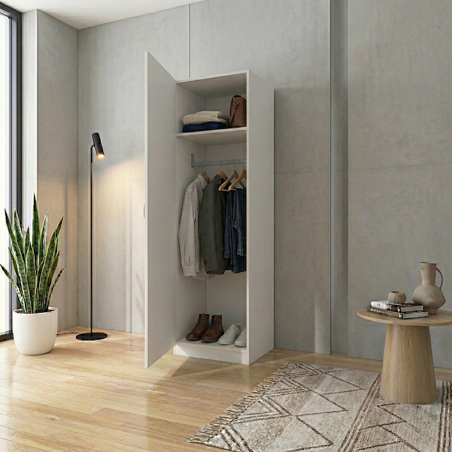 Dulap cu o usa si cu bara haine, H197 x L45 x A50 cm, PAL 18mm, Culoare Alb