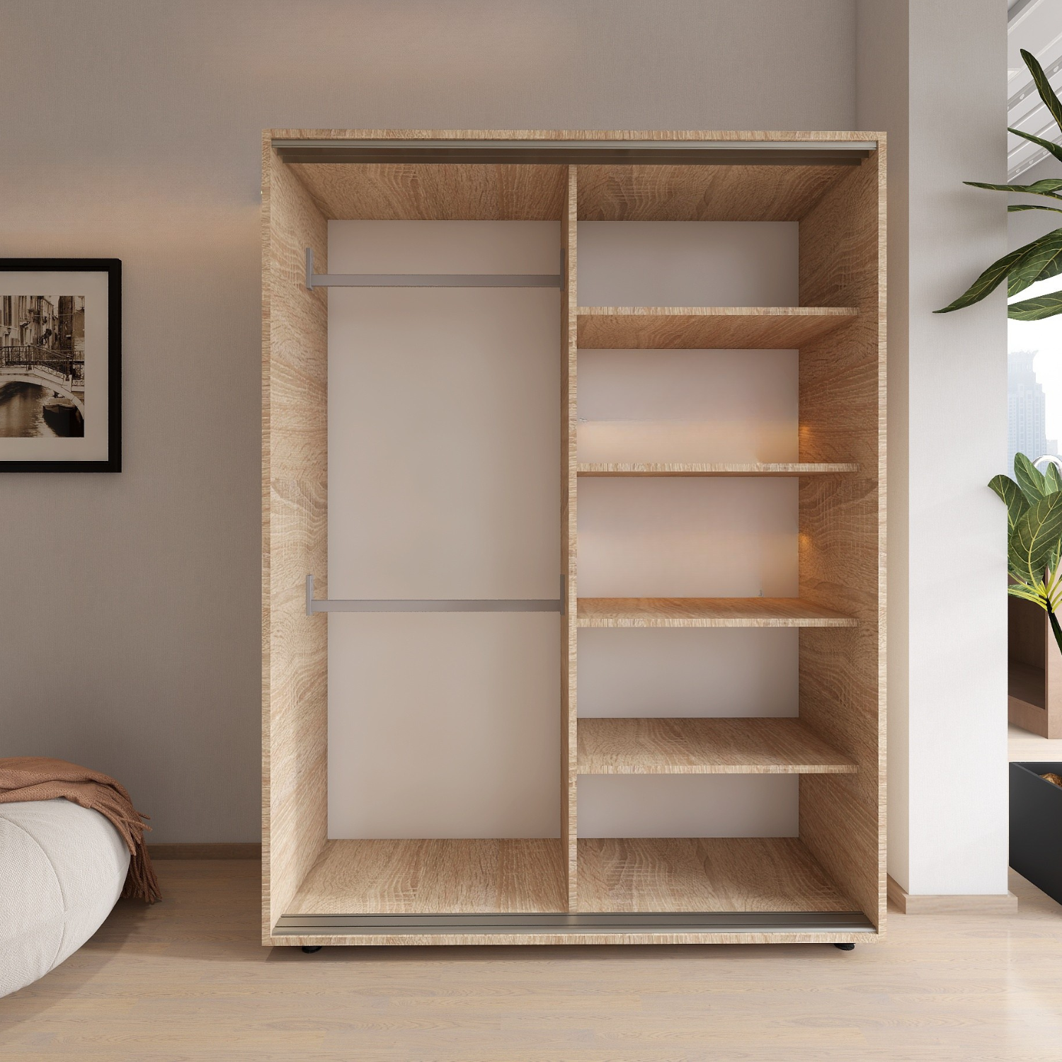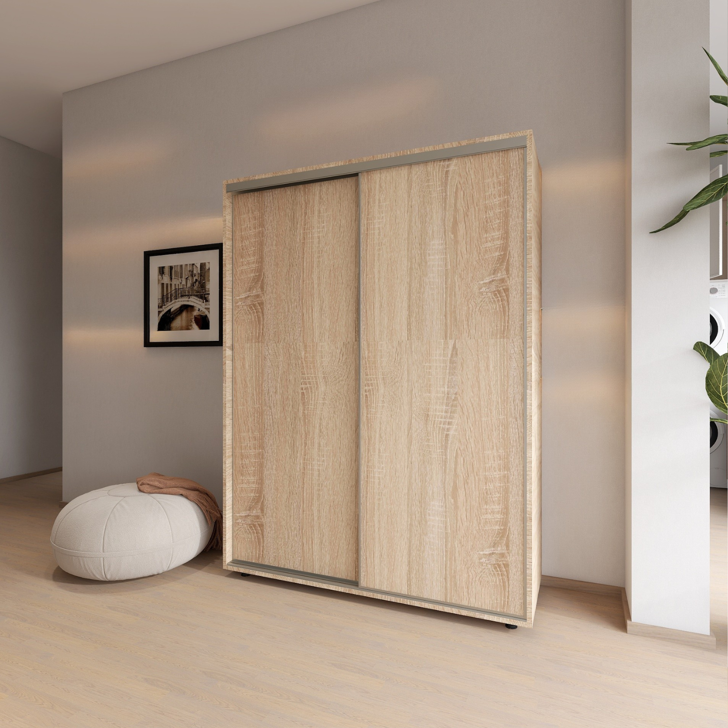 Dulap usi culisante L180 x H200 x A60 cm, Culoare Stejar Sonoma, Pal 18mm, Cant ABS, Manere Aluminiu